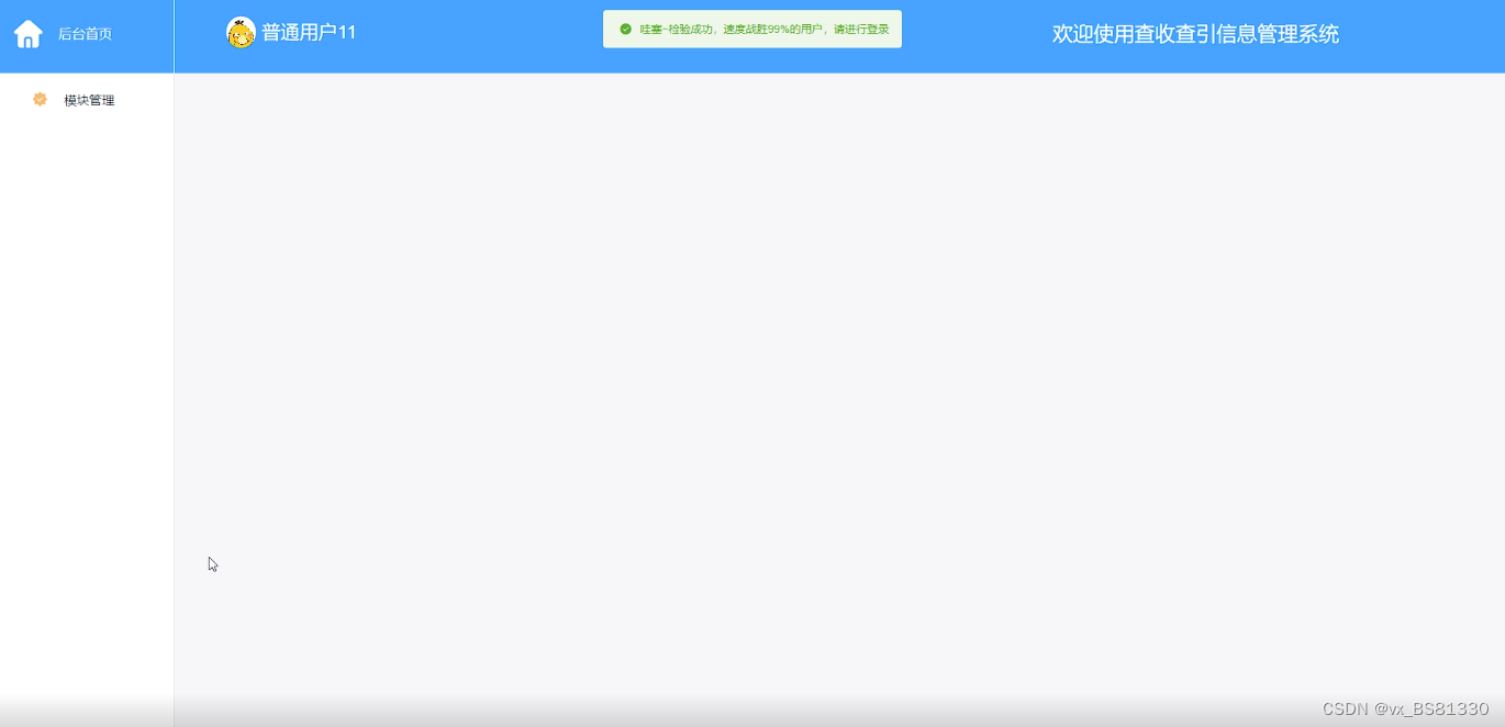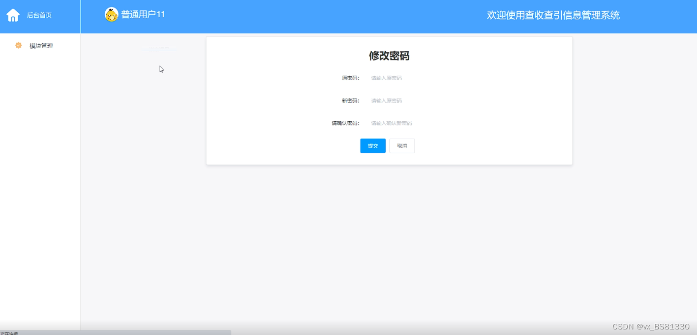 该模块是为所有用户登录设计的,如用户这种普通用户登录后只能进行自己的普通功能操作(如个人信息修改),管理员和超级管理员登录后有不同的权限,管理员不能超越权限。超级管理员能对整个系统的数据进行管理,主要是用户的登录权限以及用户登录后在系统里的操作权限。