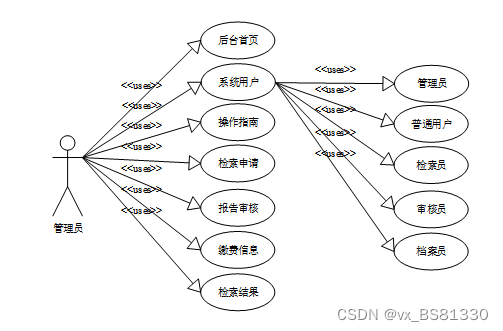 系统设计的目的是分析系统包括的所有功能结构,为开发人员设计开发和实现系统做好准备工作。经过前期的需求调查、分析和整理之后,确定的总体需求主要包括多个模块,分别是:系统用户管理、操作指南、检索申请、报告审核、缴费信息、检索结果。系统整体角色分为五个部分,分别是用户、检索员、审核员、档案员和管理员。权限分布也是很明显,普通用户是在除去浏览信息之外还具有查询和管理账户信息、检索申请、缴费信息、检索结果等权限;管理员是最高权限拥有者。
