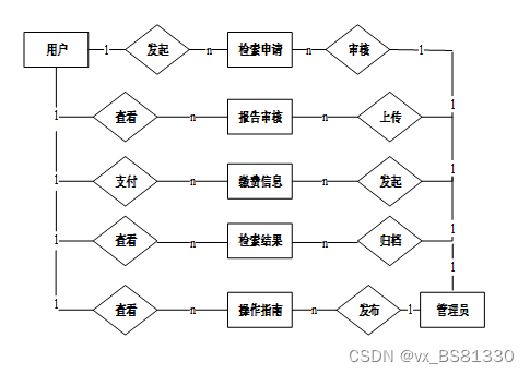 用户和检索信息存在申请关系,关系为一对多,根据申请编号来将检索信息传入到检索申请数据中,操作人为用户,然后生成检索申请信息,用户查看个人历史检索申请列表,可以进行数据销毁。