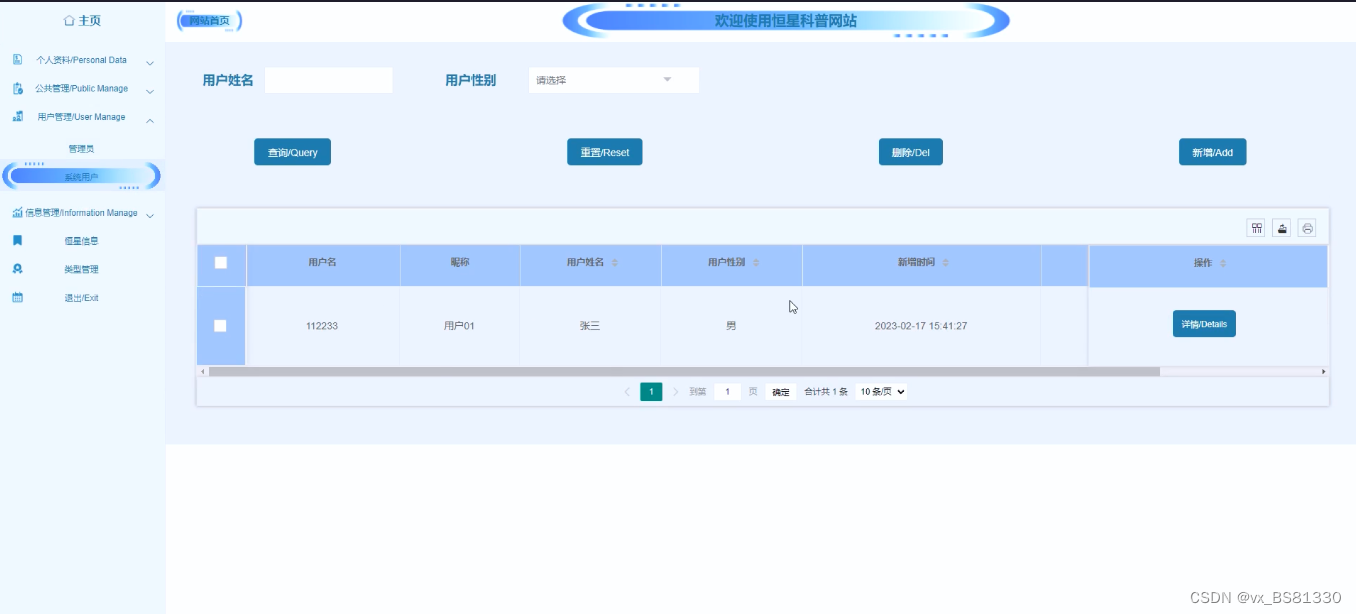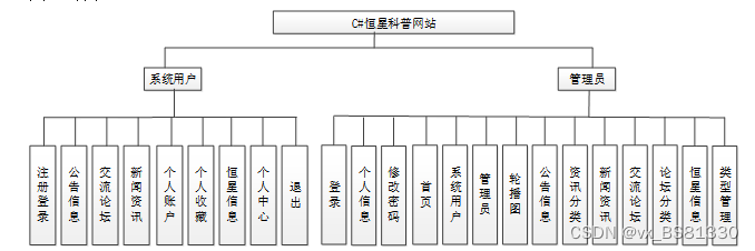 按照恒星科普网站的角色,我划分为了系统册用户管理模块和管理员管理模块这两大部分。