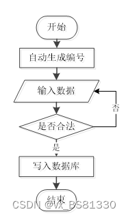 用户成功登入系统后就能够实现增加数据的操作,增加数据的编号是特定的,系统生成,用户不能随意填写,除了编号以外,其他增加信息用户自己填写,填写后的信息经过系统验证,验证合法通过就显示增加数据成功了,相反的话,就没有增加成功,图2-1显示的就是在增加数据时的流程。