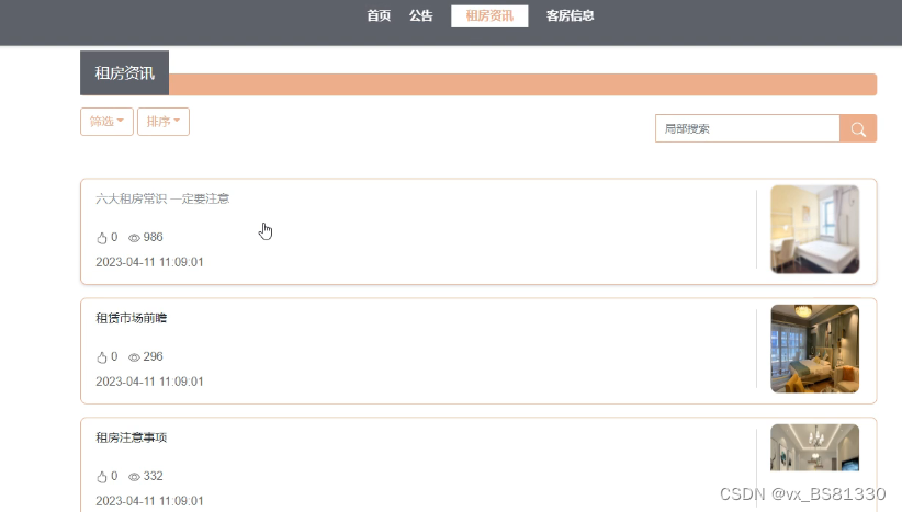 租房资讯:点击查看租房资讯内容,可以点赞收藏评论等功能。