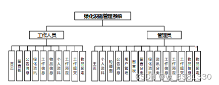绿化设施管理系统在对需求做解析后,整个系统主要分为两个部分:管理员和工作人员,每个模块下的分支功能不一样。对功能做出如下说明: