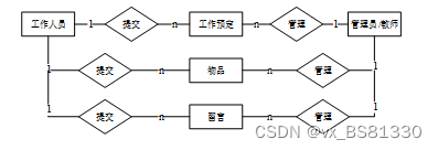 工作人员和物品信息存在申请关系,关系为一对多,根据物品编号来将物品数据传入到预定数据中,操作人为工作人员,然后生成预定列表,工作人员查看个人历史领取列表,可以进行数据销毁。