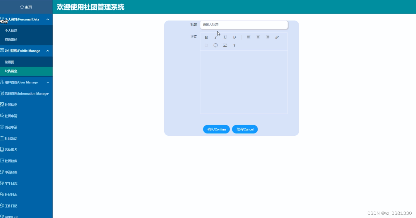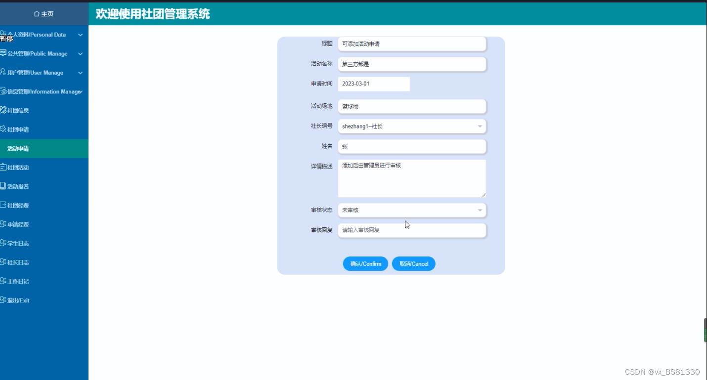 | 功能描述 | 用于社团管理 | |