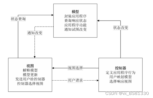 控制层主要负责视图层和模型层之间的数据传输和处理请求操作。当用户通过视图发送数据和请求时,控制层可以接收请求和数据并决定调用哪些模型、通过模型的哪些操作来处理数据和请求,处理完成后,控制层再将数据返回给相应的视图。