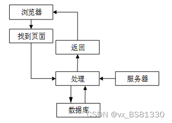 页面发送请求给控制器,控制器调用业务层处理逻辑,逻辑层向持久层发送请求,持久层与数据库交互,后将结果返回给业务层,业务层将处理逻辑发送给控制器,控制器再调用视图展现数据。