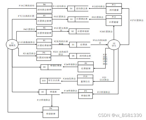 第三章系统分析:主要是对社团管理系统进行需求分析,以及对其数据流程与功能进行分析。