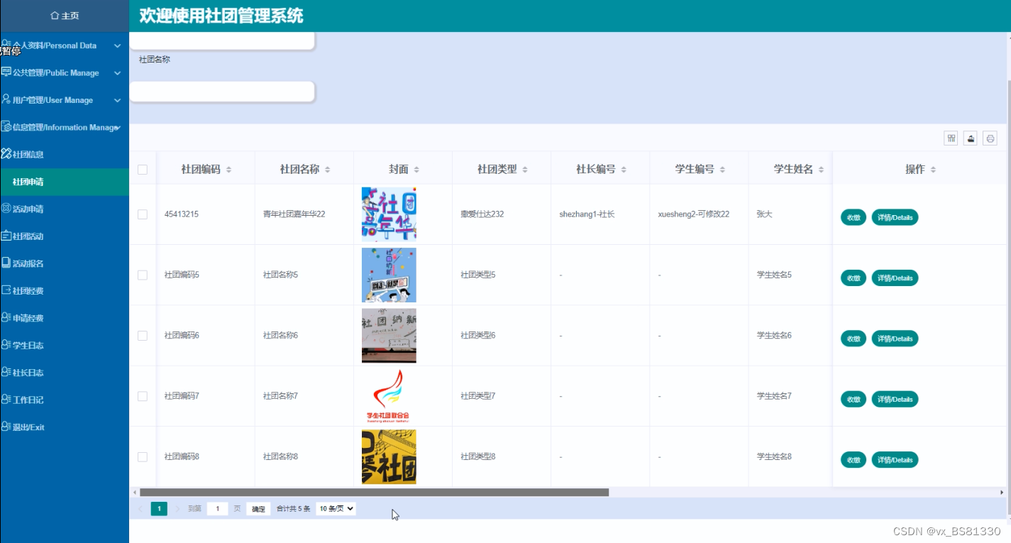 图5-16社团管理界面