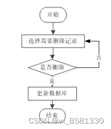 用户选择要删除的信息并单击Delete按钮。系统提示是否删除信息。如果用户想要删除信息,系统将删除信息。系统数据库删除信息。删除信息流程图如图3-5所示。