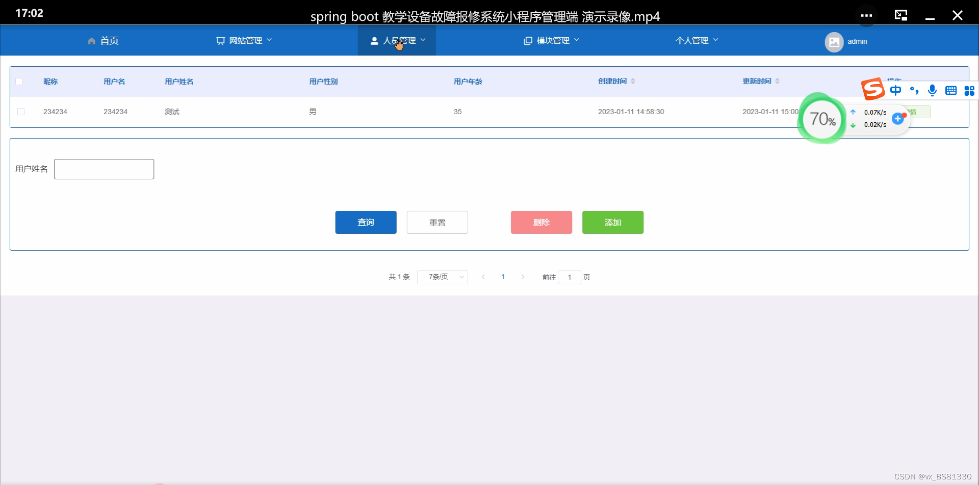 在用户信息页面用户信息可以进行添加、查看、编辑基本信息、等操作如图5.8所示。