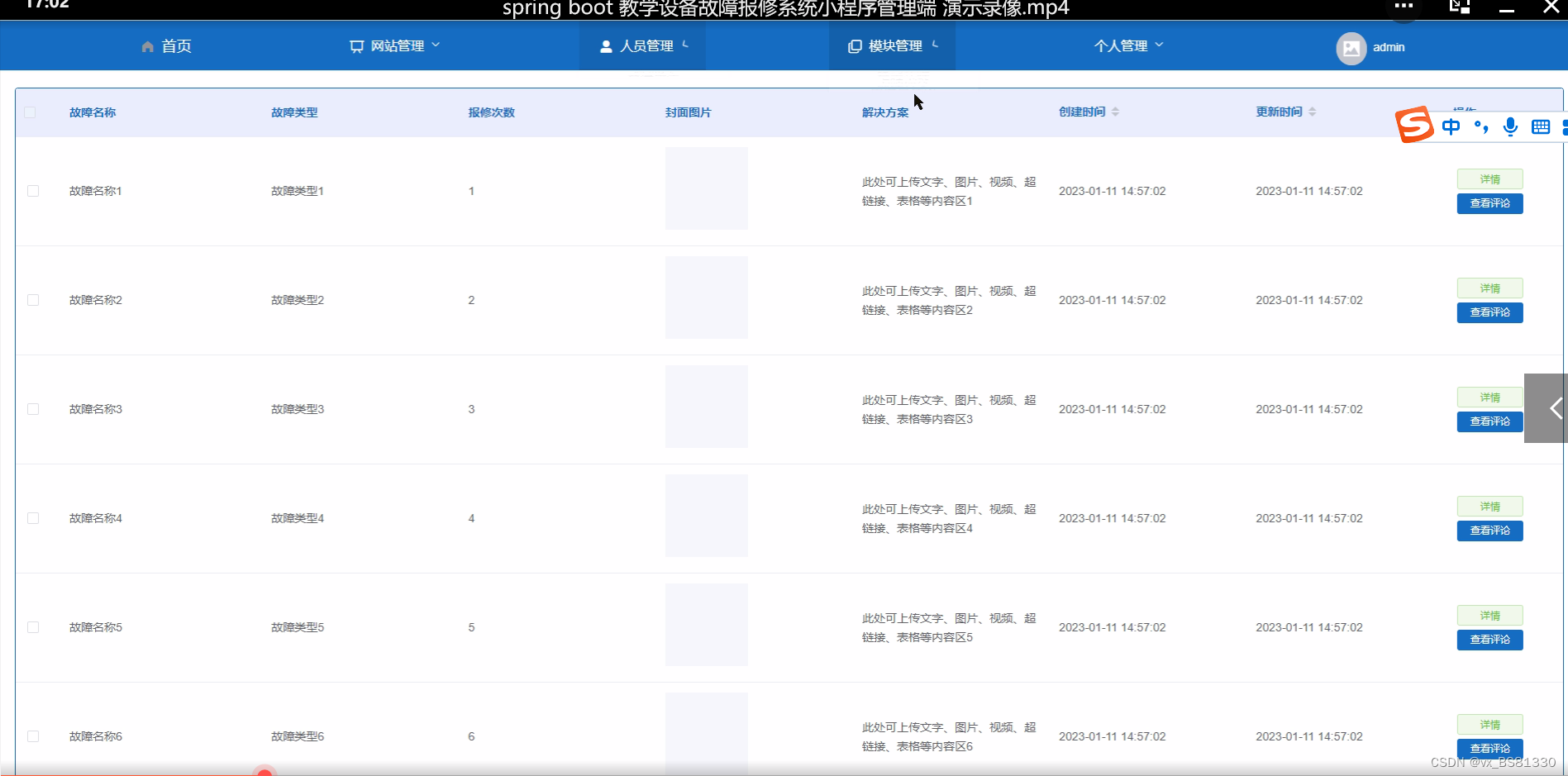 系统管理也都将通过计算机进行整体智能化操作,对于教学设备故障报修系统所牵扯的管理及数据保存都是非常多的,例如管理员;首页、网站管理(轮播图、关于我们)人员管理(管理员、普通用户)模块管理(热门故障、基本故障、电脑求助、电脑报修、故障分类、申请管理员)个人管理等,这给管理者的工作带来了巨大的挑战,面对大量的信息,传统的管理系统,都是通过笔记的方式进行详细信息的统计,后来出现电脑,通过电脑输入软件将纸质的信息统计到电脑上,这种方式比较传统,而且想要统计数据信息比较麻烦,还受时间和空间的影响,所以为此开发了教学设备故障报修系统;为用户提供了方便管理平台,方便管理员查看及维护,并且可以通过需求进行内容的编辑及维护等;对于用户而言,可以随时进行查询所需信息,管理员可以足不出户就可以获取到系统的数据信息等,而且还能节省用户很多时间,所以开发教学设备故障报修系统给管理者带来了很大的方便,同时也方便管理员对用户信息进行处理。