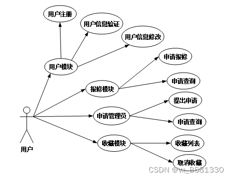 1.普通用户主要使用系统的教学设备故障报修系统发布商品信息,下图所示为普通用户的用例图。
