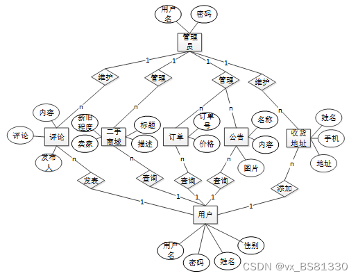 | 主事件流 | (1)管理员进入二手商城界面,查询二手商城商城信息 (2)管理员可以删除二手商城 |