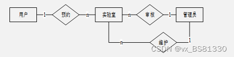 对于一个要开发的系统来说,E-R图可以让别人能更快更轻松的了解此系统的事务及它们之间的关系。根据系统分析阶段所得出的结论确定了在实验室管理信息平台中存在着多个实体分别是用普通用户、管理员、实验室、预约。