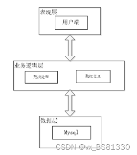 数据层(DL):由于本高校二手物品交易系统的数据是放在服务端的mysql数据库中,因此本属于服务层的部分可以直接整合在业务逻辑层中,所以数据层中只有数据库,其主要完成本高校二手物品交易系统的数据存储和管理功能。