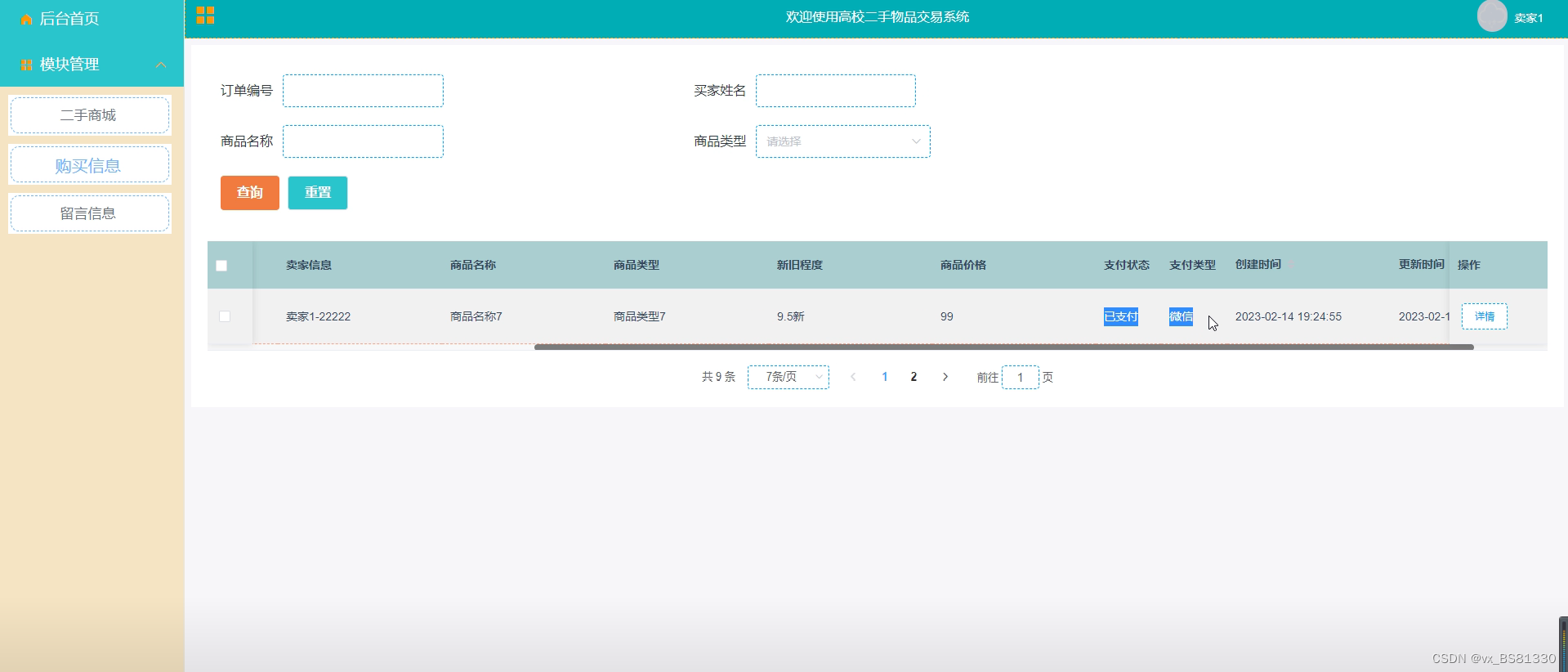 (1)二手商城:卖家可以对高校二手物品交易系统中现有的商品进行增删改查。