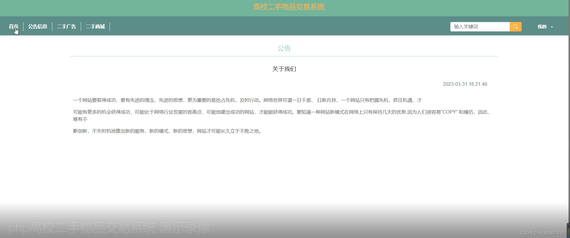 本文围绕高校二手物品交易系统展开,分析了系统开发的可行性、流程和功能,采用PHP语言、Thinkphp框架和Mysql数据库开发。详细设计并实现了用户、卖家和管理员功能模块,最后进行系统测试,为系统后期推广运营提供技术支撑。