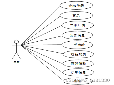 通过2.3功能的分析,得出了本高校二手物品交易系统的用例图: