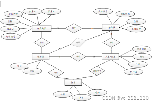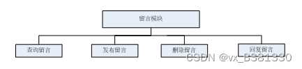 高校二手物品交易系统是一个交流性质的公开平台,会员用户可以在平台上交流,增加用户之间的互动性。但是同时也为了更好的规范留言的内容,给予管理员删除不合适的言论的功能,所以需要专门设计一个留言管理模块,具体的结构图如下:
