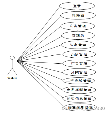 web后台管理上的管理员是维护整个高校二手物品交易系统中所有数据信息的。管理员角色用例如图2-5所示。