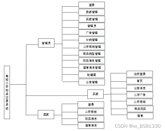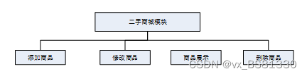 高校二手物品交易系统是中需要存储不少商品信息,其模块功能结构,具体的结构图如下: