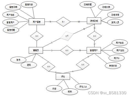 下面根据游戏社交网站的数据库总E-R关系图可以得出游戏社交网站需要很多E-R图,在此罗列出来一些主要的数据库E-R模型图。