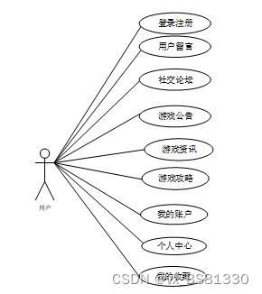 通过2.3功能的分析,得出了本游戏社交网站的用例图: