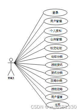 web后台管理上的管理员是维护整个游戏社交网站中所有数据信息的。管理员角色用例如图2-4所示。