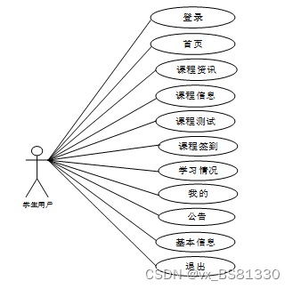 图2-3 计算机课程教学辅助系统小程序学生用户角色用例图