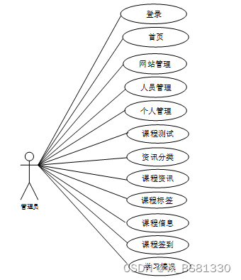 web后台管理上的管理员是维护整个计算机课程教学辅助系统小程序中所有数据信息的。管理员角色用例如图2-4所示。