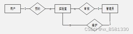 对于一个要开发的系统来说,E-R图可以让别人能更快更轻松的了解此系统的事务及它们之间的关系。根据系统分析阶段所得出的结论确定了在实验室管理信息平台中存在着多个实体分别是用普通用户、管理员、实验室、预约。