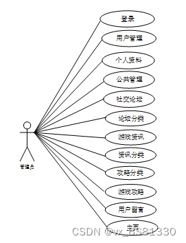 web后台管理上的管理员是维护整个游戏社交网站中所有数据信息的。管理员角色用例如图2-4所示。