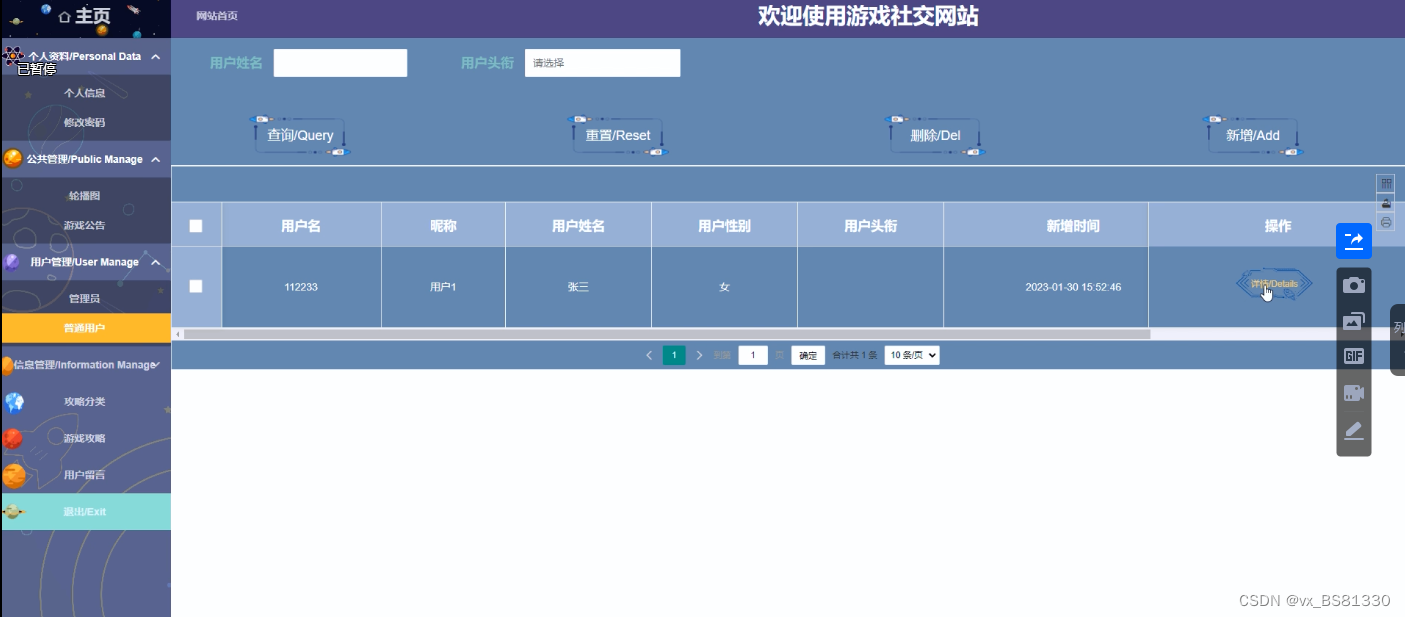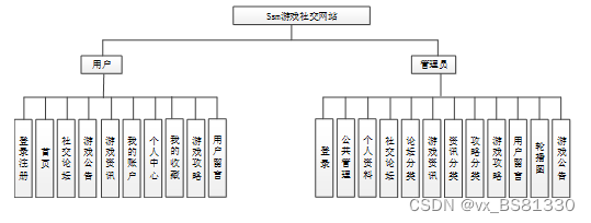按照游戏社交网站的角色,我划分为了普通用户管理模块和管理员管理模块这两大部分。
