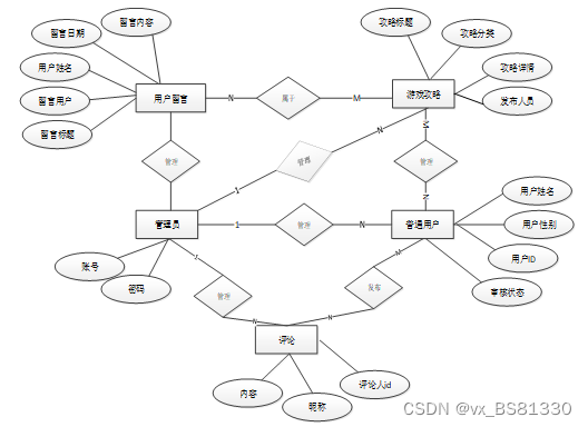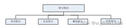 游戏社交网站是一个交流性质的公开平台,会员用户可以在平台上交流,增加用户之间的互动性。但是同时也为了更好的规范留言的内容,给予管理员删除不合适的言论的功能,所以需要专门设计一个留言管理模块,具体的结构图如下:
