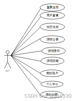 通过2.3功能的分析,得出了本游戏社交网站的用例图: