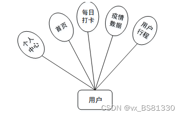(2)系统用户:首页、个人中心、更多管理(每日打卡、疫情数据、用户行程)等功能。用户用例如图3-2所示。