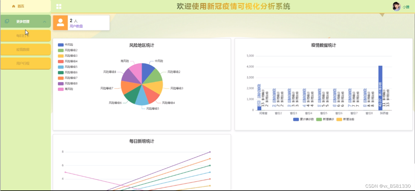 (6)稳定性:开发的新冠疫情可视化分析系统 要求运行稳定,运行过程中无界面不清楚、字体模糊等现象。