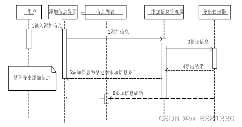 管理员以及用户登录后均可进行添加信息操作,添加信息模块顺序图如图4-4所示。