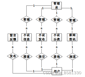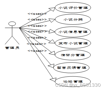 管理员模块:系统用户管理、小说分类管理、关于我们设置、用户注册管理、小说发布管理、小说分类管理、信誉记录管理、评价小说管理、留言反馈管理、论坛管理。