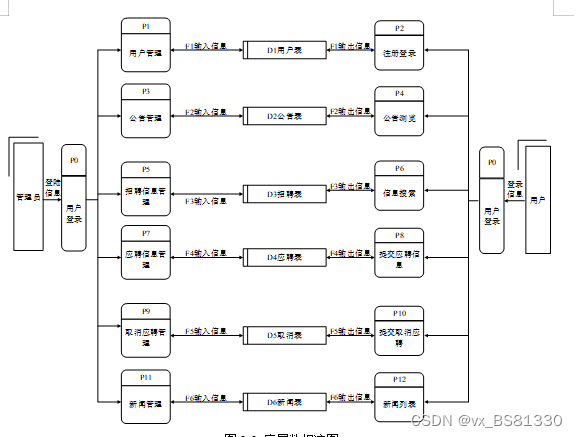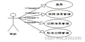 招聘信息数据模块:可分为招聘信息数据浏览、招聘信息数据检索、招聘信息数据维护三个模块,管理员对招聘信息数据有维护的权限,商家可以发布新的招聘信息数据、更新已有的招聘信息数据等。