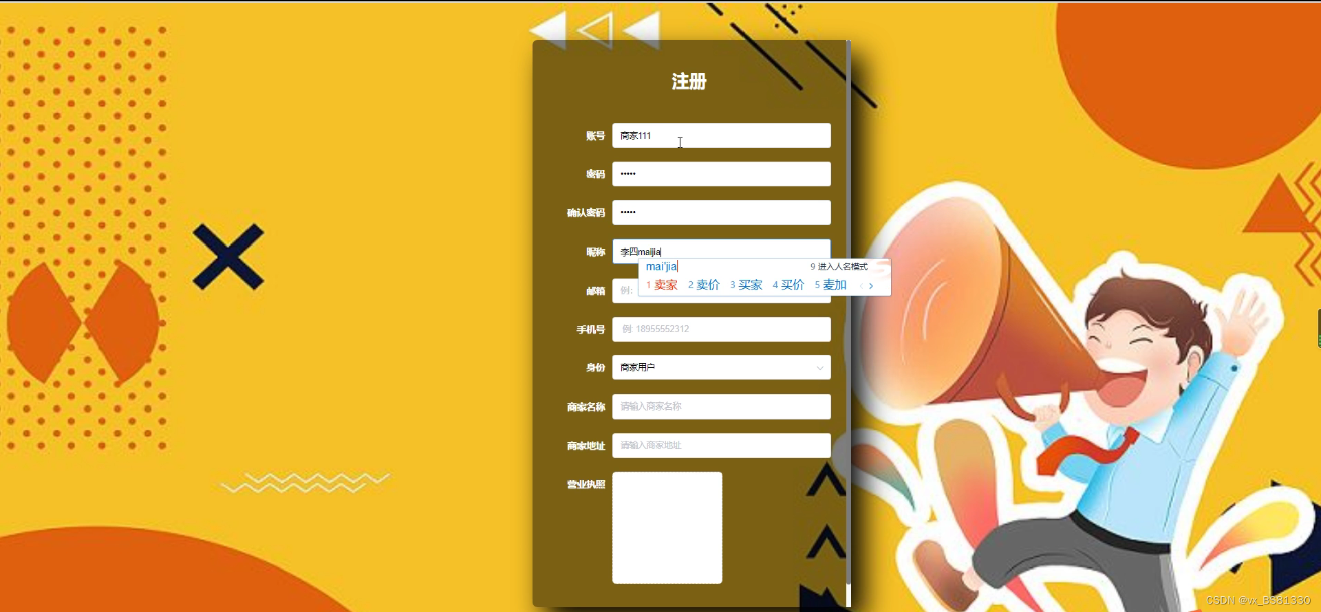 用户管理:对注册的商家、用户信息进行维护管理等。