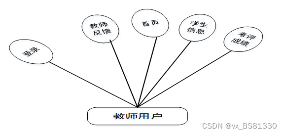 (2)教师:首页、学生信息、考评成绩、教师反馈等功能。用户用例图如图3-2所示。