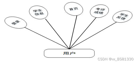 (3)学生:首页、学生信息、考评成绩、学生反馈等功能。用户用例图如图3-3所示。