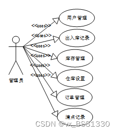 系统设计的目的是分析系统包括的所有功能结构,为开发人员设计开发和实现系统做好准备工作。经过前期的需求调查、分析和整理之后,确定的总体需求主要包括多个模块,分别是:用户管理,货物分类,入库记录,库存管理,出库记录,仓库设置,订单管理,清点记录等。系统整体角色分为四个部分,一是仓管员、二是采购部、三是销售商、最后是管理员。权限分布也是很明显,仓管员是在除去浏览信息之外还具有查询和管理自己账户信息,货物分类,入库记录,库存管理,出库记录,仓库设置,订单管理,清点记录等权限;管理员是最高权限拥有者。