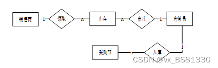 仓管员和库存存在领取关系,关系为一对多,根据库存编号来将库存数据传入到领取数据中,操作人为仓管员,然后生成领取列表,仓管员查看个人历史领取列表,可以进行数据销毁。