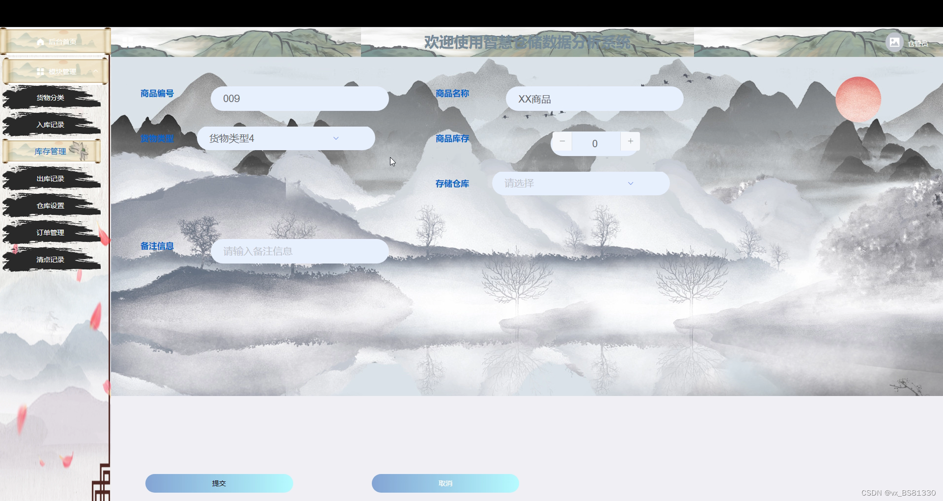 操作人来录入库存数据,点击库存录入按钮,依次填写要录入的库存数据,点击提交按钮,将数据提交至数据库,然后刷新库存数据页面,每条数据右边有删除和编辑按钮,来完成相应的删除和更新功能。