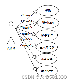 该模块是为所有用户登录设计的,如仓管员登录后只能进行自己的普通功能操作(如个人信息修改),管理员能对整个系统的数据进行管理,主要是用户的登录权限以及用户登录后在系统里的操作权限。