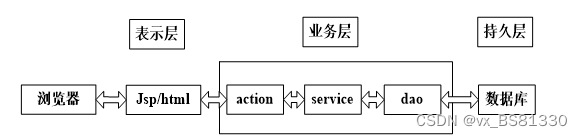 目前B/S体系的系统主要的数据访问方式是:通过浏览器页面用户可以进入系统,系统可以自动对用户向服务器发送的请求进行处理,处理请求是在系统后台中进行的,用户在浏览器页面上进行相应操作,就能够看到服务端传递的处理结果。养老院系统主要分为视图-模型-控制三层架构设计。在视图层中,主要是操作在服务器端向客户端反馈并显示的数据,在模型层中,主要处理相关的业务逻辑、数据整合等,最后的控制层它介于视图和模型之间,主要是调整两层之间的关系,最终落实数据的传递。