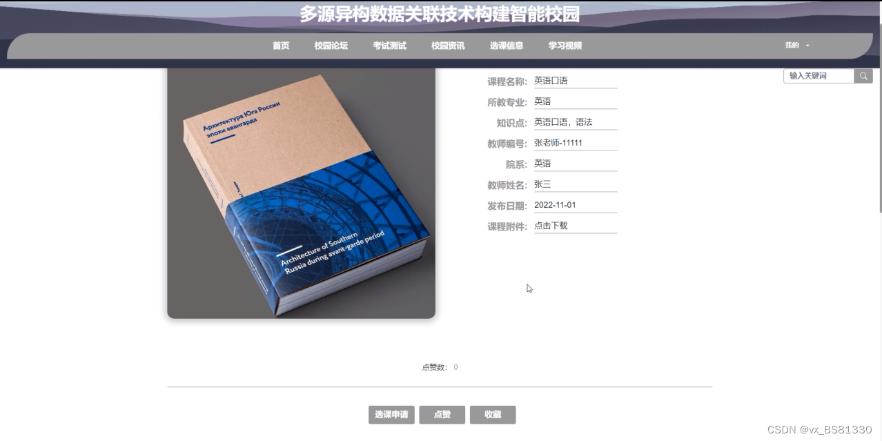 选课申请,在此页面可以查看可以选择的课程,并申请选课,收藏,评论等,如图5-15,16所示。